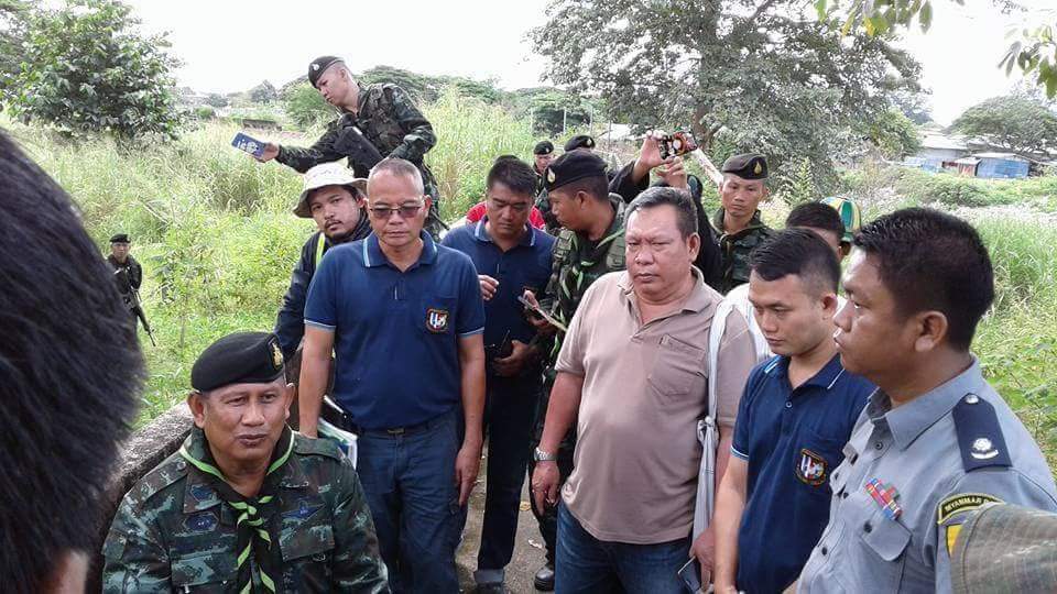 မြန်ဘာဘက်ကနယ်ခြားကော်မတီဥက္ကဌမြဝတီရှေ့တန်းမှူးဒုဗိုလ်မှူးကြီးအောင်ကိုသွင်နဲ့တာဝန်ရှိသူတွေသွားရောက်တားမြစ်ခဲ့ကြပါတယ်။