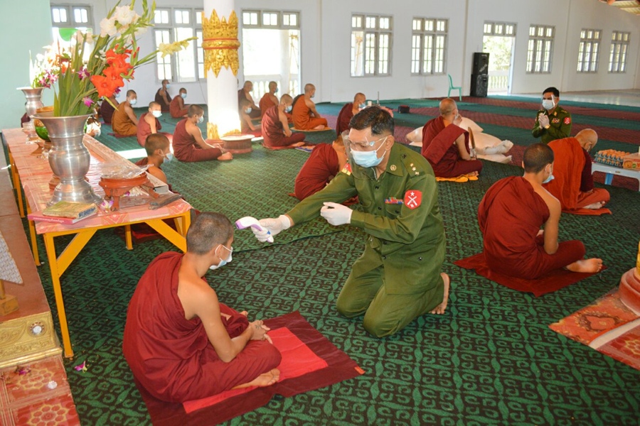 ဘုန်းတော်ကြီးကျောင်းများနှင့် သာသနာနွယ်ဝင်သီလရှင်ကျောင်းများ၌ ဆွမ်း၊ ကွမ်းအဆင်ပြေစေရေးအတွက် တပ်မတော်(ကြည်း၊ရေ၊လေ)အရာရှိ၊ စစ်သည်၊ အရာထမ်း၊ အမှုထမ်းများက တိုင်းစစ်ဌာနချုပ်များအလိုက် မြို့နယ်အသီးသီးရှိ ဘုန်းတော်ကြီးကျောင်းများ၊ သာသနာနွယ်ဝင်သီလရှင်ကျောင်းများသို့ ဆွမ်းဆန်တော်၊ ဆီ၊ ဆား၊ ပဲ အမယ် (၄)မျိုးနှင့် လှူဖွယ်ပစ္စည်းများ လှူဒါန်းခြင်း၊ ချက်ပြုတ်ရေးအဖွဲ့များ ဖွဲ့စည်း၍ နေ့ဆွမ်းဆက်ကပ် လှူဒါန်းခြင်းများအား ဆောင်ရွက်လျက်ရှိသည်။